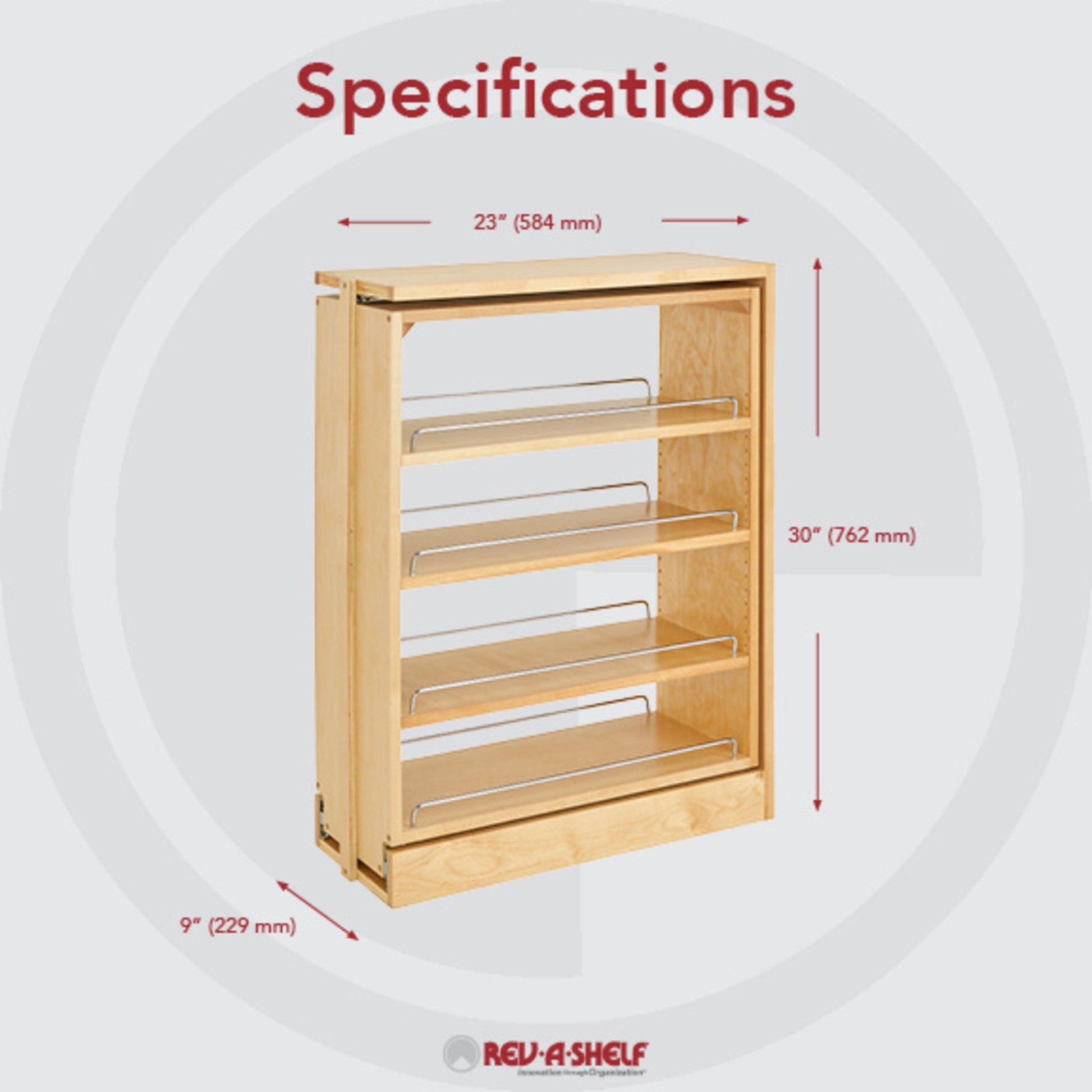 Rev-A-Shelf / 432-BF-9C / Wood Base Filler Pull Out Organizer for New Kitchen Applications