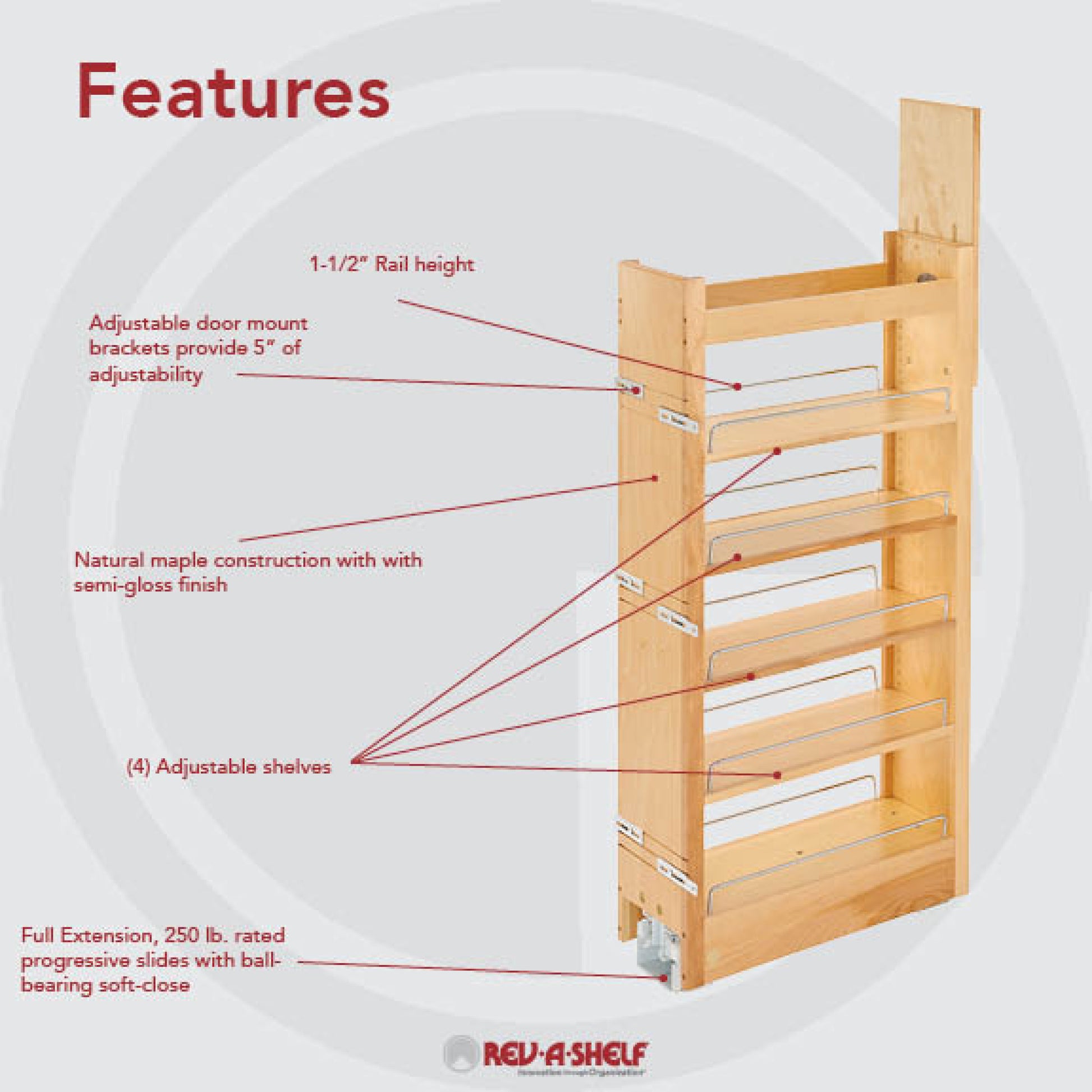 Rev-A-Shelf / 448-TP43-8-1 / Wood Tall Cabinet Pull Out Pantry Organizer w/Soft Close