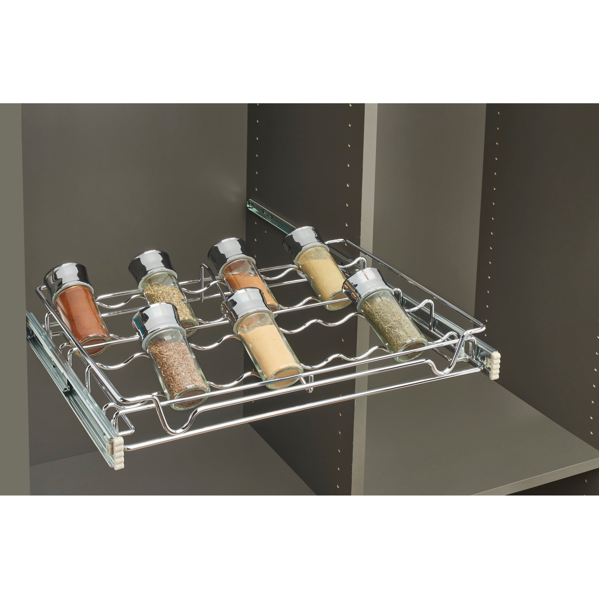 Sidelines / 5WSCR-18CR-1 / Deluxe Pull Out Pantry Spice Organizer for Custom Walk-In Pantry Storage