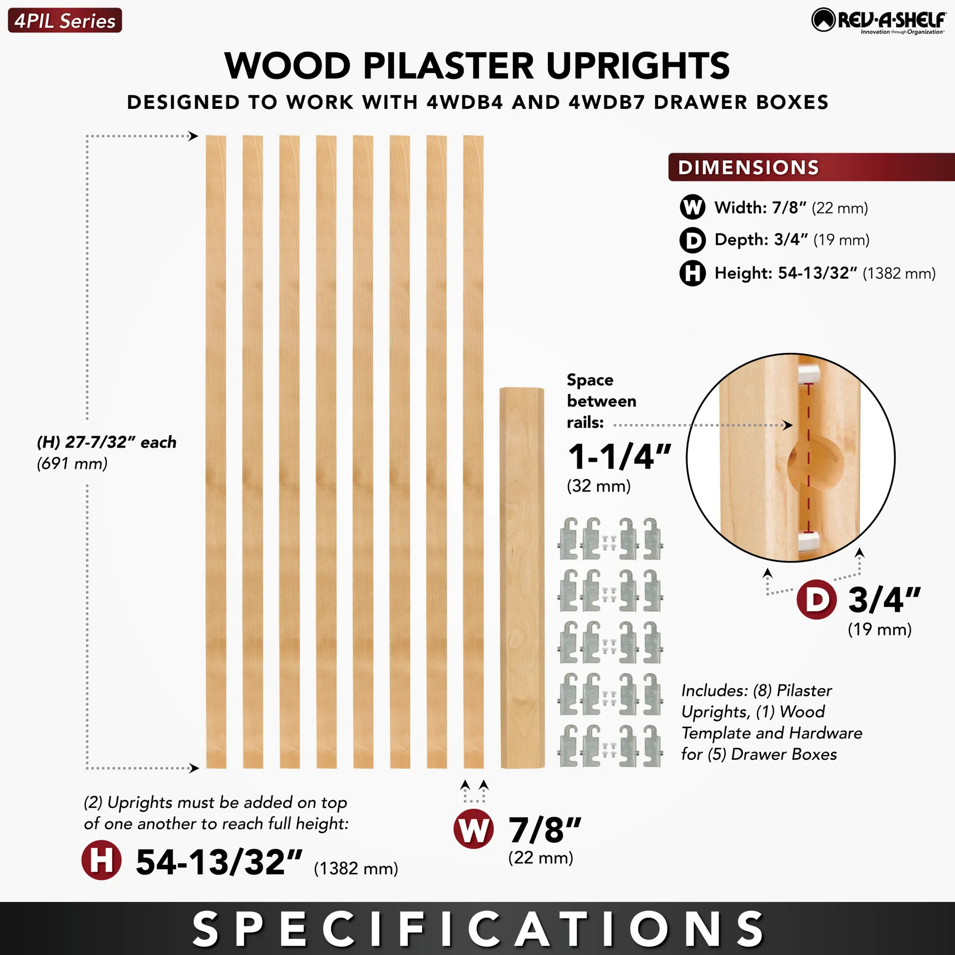 | Upgrade your kitchen cabinet projects with the 4PIL Wood Pilaster System from Rev-A-Shelf. Designed for quick installation and a clean professional finish, this system makes adding drawer pullouts effortless. With versatile sizing and a cost-effective design, it's the perfect solution for maximizing storage and functionality in any kitchen. |