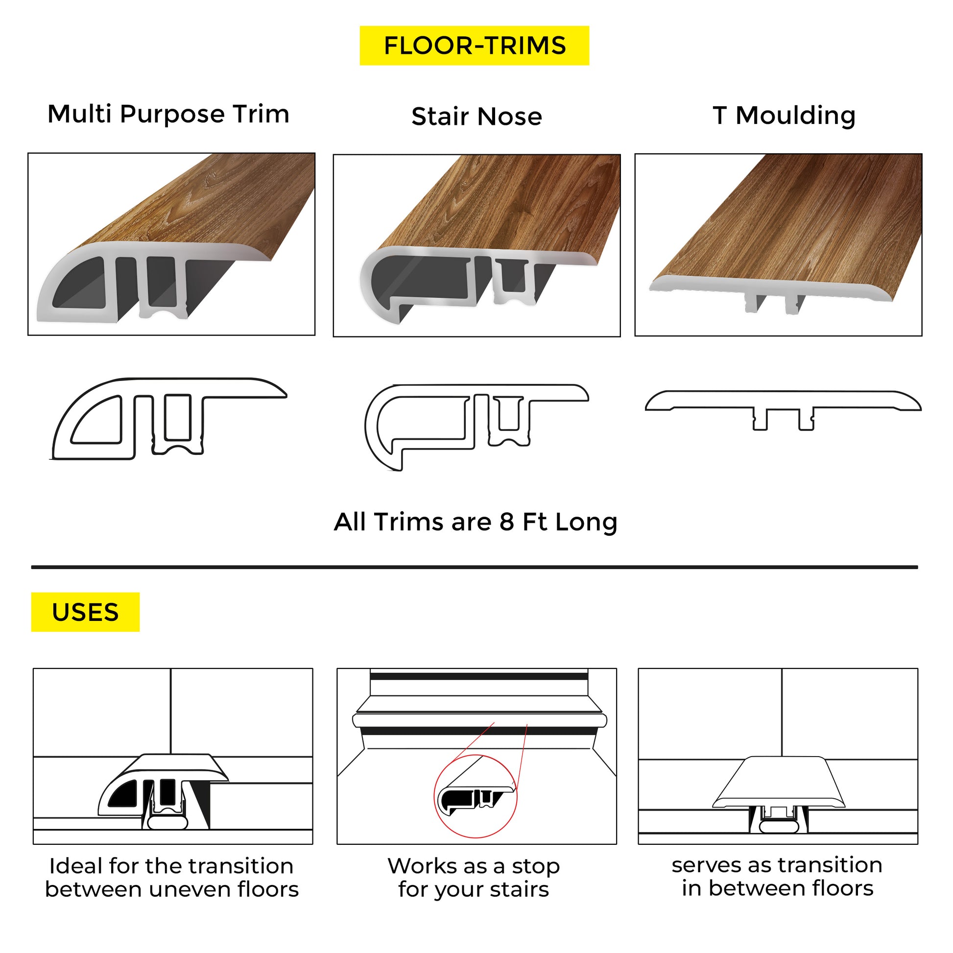Uses: Ideal for the transition between uneven floors.