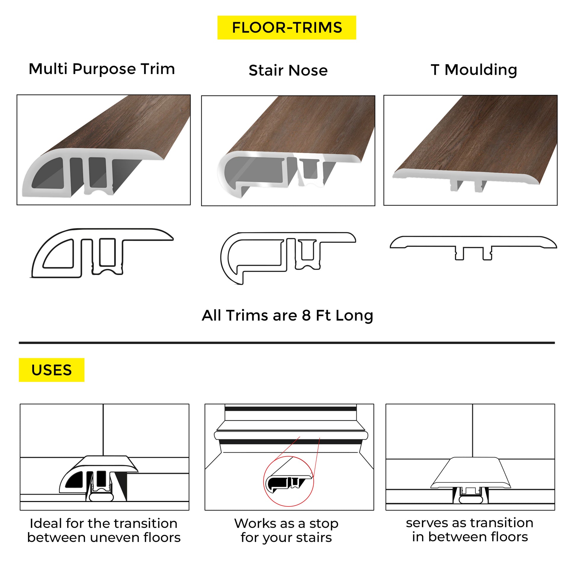 Ensure safety and style with our Stair Nose. It provides a smooth edge for your stairs, preventing trips and enhancing aesthetics.